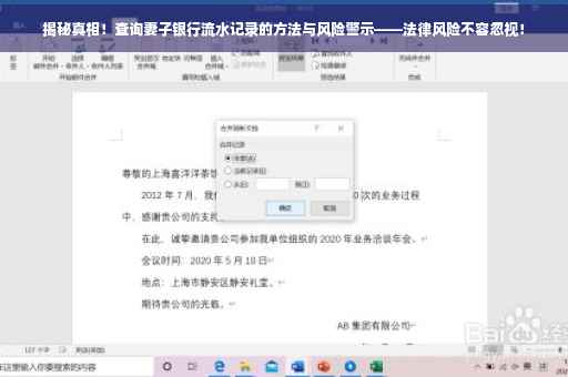 3、查询权限问题:在某些情况下,可能需要额外的授权或证明文件才能查询妻子银行流水,请按照银行要求提供相应的证明文件。
