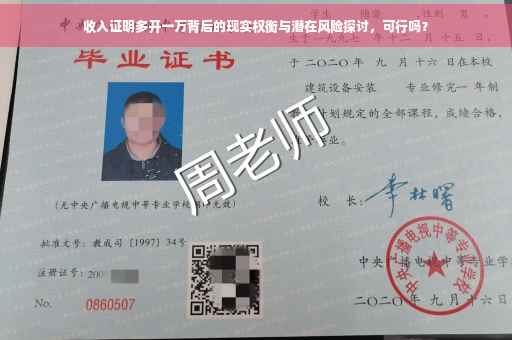 摘要:关于收入证明多开一万的问题,涉及现实与风险之间的权衡。多开收入证明可能满足某些需求或要求,但另一方面也可能带来风险,如信用损失或法律纠纷。在决定多开收入证明时,应谨慎权衡利弊,考虑实际情况和个人信用状况,避免不必要的风险。应遵守诚信原则,确保信息的真实性和准确性。