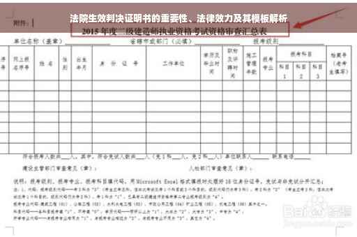 在法治社会中,法院生效判决证明书作为司法程序的重要成果,具备崇高的法律效力和广泛的社会影响力,本文将全面解析法院生效判决证明书的功能、法律效力及其重要性,并通过实际案例和相关法律规定,帮助公众更深入地了解和认识这一法律文件。