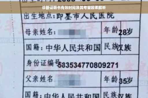 摘要:诊断证明书的有效时间及其考量因素包括患者病情、治疗进展、医嘱有效期等方面。具体有效时间因医疗机构规定而异,通常诊断证明书会明确标注有效期限。患者需了解诊断证明书的重要性,并在有效期内根据病情变化和医嘱更新情况及时重新开具,以确保其有效性。有效期限的长短需结合实际情况进行灵活调整,确保医疗证明的真实性和有效性。