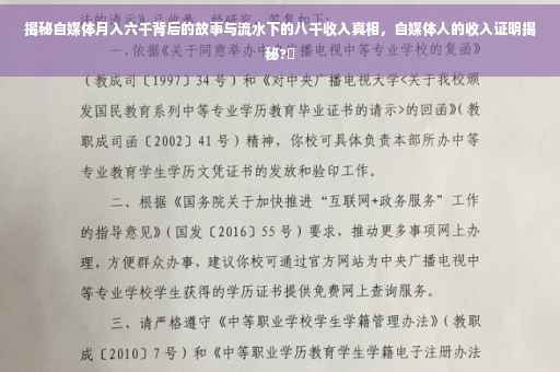 揭秘自媒体月入六千背后的故事,实际收入可能与外界想象不同。本文将探讨如何通过流水证明实际收入六千,但收入证明却显示八千的技巧。自媒体从业者如何在收入证明上展现更高的收入,同时揭示收入证明的真实性和可信度的重要性。本文旨在让读者了解自媒体行业的收入真相,并提醒大家在处理收入证明时需谨慎。