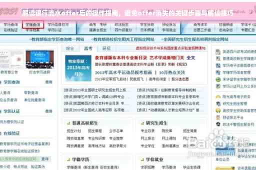 摘要:,,本文提供关于银行流水offer后的全面解读与操作指南。在提交银行流水后,offer消失了的情况也进行了详细解析。文章旨在帮助读者了解银行流水的重要性及其影响,同时提供应对策略和操作步骤,帮助读者更好地处理相关事宜,确保顺利获得所需的服务或产品。