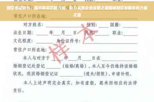 随着科技的飞速发展,印刷行业也在不断进步,在这个行业中,耐印率是一个至关重要的指标,耐印率证明书作为衡量印刷品耐用性和质量的重要标准,受到了广泛关注,本文将详细介绍耐印率证明书的作用、意义、实际应用以及办理流程,旨在帮助读者更好地了解这一重要文件。