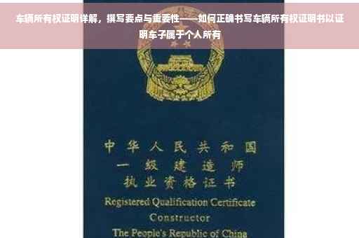 撰写一份规范、有效的车辆所有权证明书,对于保护车主权益、方便车辆管理具有重要意义,车主在撰写车辆所有权证明书时,应确保信息的真实性和完整性,遵循上述要点进行填写,建议车主将车辆所有权证明书妥善保存,以备不时之需,车主还应定期更新和维护车辆所有权证明,以确保其有效性。