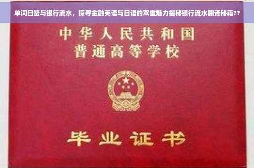 摘要:本文将探讨金融英语中的单词日签与银行流水,揭示其双重魅力。通过深入了解银行流水的日文翻译,展现金融领域的语言魅力。本文旨在帮助读者更好地理解并运用金融英语词汇,为金融领域的交流与学习提供便利。