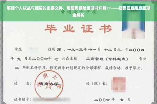 摘要:本文将详细解读退居民保险证明书,一份关于个人权益与保障的重要文件。通过该文件,居民可以了解自己的医保权益及退保后的相关事宜。本文将介绍该证明书的用途、内容及其重要性,帮助读者理解并正确使用,确保个人权益得到保障。