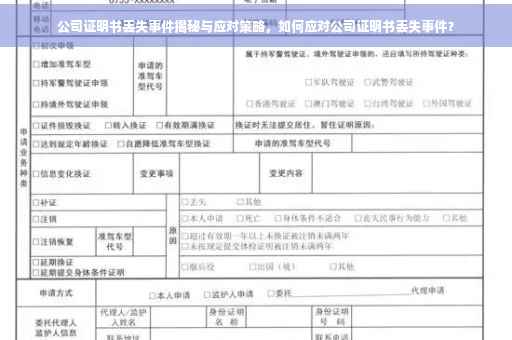 公司证明书丢失事件概述及应对策略。某公司证明书遗失,事件起因不明。公司立即启动应急预案,展开调查并采取措施。经核实,丢失物品包括重要证明文件。为应对此情况,公司一方面报警寻求帮助,另一方面启动内部审查机制,确保其他文件安全。公司紧急印制备份文件以应对紧急需求。此次事件提醒公司需加强文件管理,确保重要文件的安全与完整。摘要字数控制在规定范围内,简洁明了地概括了事件始末及应对措施。