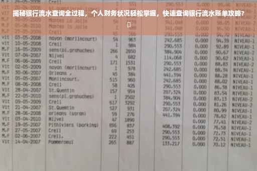 在这个数字化时代,银行业务越来越便捷化,越来越多的人开始关注自己的财务状况,银行流水作为个人财务的重要记录之一,引起了广泛关注,本文将引导您逐步了解银行流水查询的全过程,助您轻松掌握个人财务状况。
