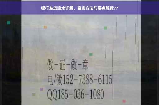 摘要:本文将详细介绍银行车贷流水的相关知识。内容包括如何查询银行车贷流水,以及流水中的各项细节解读。通过本文,读者可以了解如何有效管理自己的车贷流水,确保贷款顺利审批及还款。提供查询流程中的注意事项,帮助读者避免不必要的麻烦。