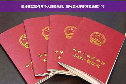 摘要:本文深入探讨了贷款条件与个人财务规划,重点介绍了银行流水在还贷中的重要性。文章指出,银行流水需要达到一定的数额才能满足贷款要求,具体数额因贷款类型、金额和期限等因素而异。读者将了解如何通过合理的个人财务规划,达到银行流水的要求,顺利获得贷款。