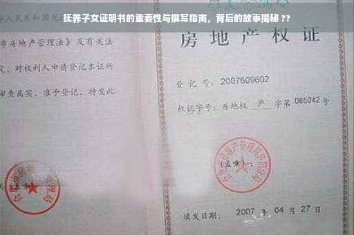 随着社会的不断进步和家庭结构的变化,抚养子女成为众多家庭的核心任务之一,在这个过程中,抚养子女证明书逐渐受到人们的广泛关注,本文将为您详细介绍抚养子女证明书的功能、办理流程以及注意事项,并着重阐述其重要性,以帮助大家更好地了解和使用这一重要文件。