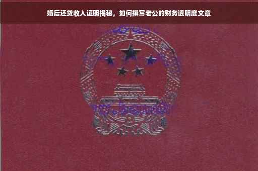 摘要:本文将介绍如何撰写婚后还贷的收入证明,帮助揭开伴侣的财务面纱。本文将简要概述收入证明的重要性,包括在婚姻中了解伴侣财务状况的必要性。将提供关于如何准备和撰写收入证明的具体步骤和要点,包括证明的格式、内容以及需要提供的关键信息。本文旨在帮助读者更好地了解伴侣的财务状况,促进夫妻之间的沟通和信任。