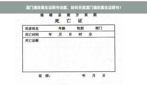 澳门通关医生证明书是用于证明个人健康状况的医学证明文件,在特定情况下,如患有疾病、进行手术或接受特殊治疗等,可能需要提供此类证明以符合澳门海关和边境检查站的通关要求。
