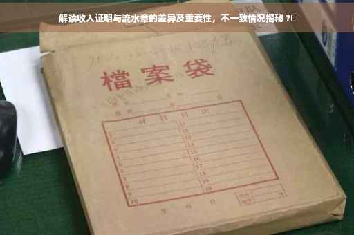 摘要:本文将探讨收入证明与流水章之间的差异及其重要性。收入证明通常用于证明个人的稳定收入来源,而流水章则反映了个人银行账户的资金流动情况。两者不一致时,会对个人信用评估产生影响。本文将深入分析两者的差异,并强调在财务审核过程中正确理解和使用这两者的关键性。