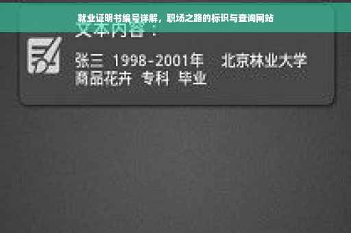 在当今社会,随着经济的快速发展和人才竞争的日益激烈,就业问题成为了人们关注的焦点,就业证明书作为劳动者就业和求职过程中的重要凭证,其编号更是成为了一个不可忽视的关键信息,本文将详细介绍就业证明书编号的相关知识,帮助大家更好地理解和使用这一重要标识。