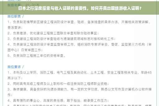 摘要:本文将探讨日本之行中的深度探索与收入证明的重要性。文章指出,出国旅游时,提供收入证明是展示个人经济能力和信誉的重要方式。针对前往日本的旅行者,本文将介绍如何开具有效的收入证明,以确保顺利出行并体验深度探索的乐趣。