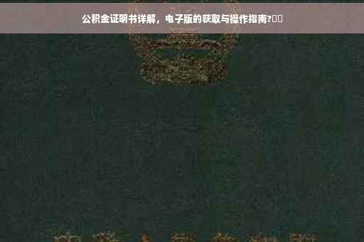 摘要:本篇文章详细介绍了公积金证明书的内容,包括如何顺利获取公积金证明书以及电子版的操作指南。通过本文,读者可以了解到公积金证明书的重要性,以及如何按照规定流程申请并获取公积金证明书的电子版,以便更好地管理和使用个人公积金。
