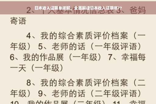 随着中日经济交流的日益频繁,越来越多的中国人在日本工作、生活和学习,在办理贷款、签证等事务时,经常需要提供收入证明单以证明个人的经济能力,本文将详细介绍日本收入证明单的构成、作用以及获取方式,帮助读者更好地了解和应对相关事务。