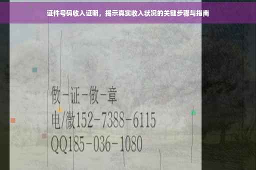 在当今社会,随着经济的发展和就业市场的繁荣,收入证明成为了越来越多场合的必备文件,证件号码收入证明是验证个人收入状况的重要依据,对于办理贷款、信用卡、租房以及就业等方面都具有重要意义,本文将详细介绍证件号码收入证明的作用、获取方式、注意事项以及常见问题解答,帮助大家更好地了解和使用这一重要证明。