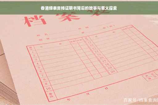 摘要:香港绿表资格证明书是探索香港移民政策的重要一环,其背后蕴含着丰富的故事和意义。这张证明书不仅代表着移民者的身份认证,更是他们融入香港社会的重要凭证。通过深入了解绿表资格证明书的申请条件、流程及其背后的政策背景,我们能够更好地理解香港移民政策的演变和发展趋势。