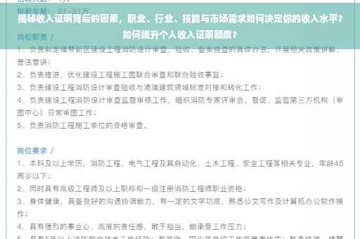 收入证明是评估个人经济能力和信用状况的重要依据,提高个人收入需要综合考虑职业选择、市场需求、技能水平和经验等因素,通过不断提升自身能力和拓展职业领域,我们能够获得更好的职业发展机会和更高的收入。