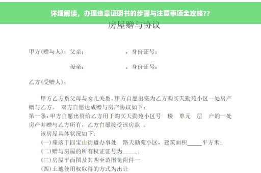 随着交通规则的日益严格,驾驶过程中违章行为的处理成为每位车主必须面对的问题,当您不慎发生违章行为时,办理违章证明书是解决问题的重要一环,本文将详细介绍办理违章证明书的步骤、注意事项及相关知识,帮助您顺利完成办理手续,避免不必要的麻烦。