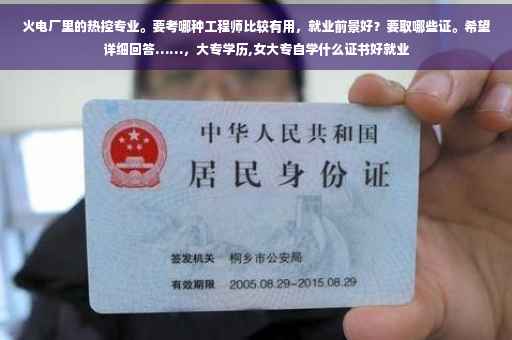 建议有空或者有条件就都考了。职业等级热控分为 热控仪表安装工。热控仪表检修工,热控自动装置试验,热控自动装置检修。还有就是热控程控保护。了这些职业等级 最高等级都是高级技师。。哪个都挺厉害的。但热控自动装置的比仪表的要难些而技术水平也算是最高的了。其次是程控保护了。主要就是逻辑了都比仪表检修高。其他水平差不多。。我现在是仪表检修中级。程控保护中级。明年考高级。呵呵有条件就都考。绝对有用。不管走到哪个电厂这些职业等级是必须要考的。如果你提前取得了证书那么基本就不用费事了。。维护 就考 仪表检修。自动装置。或承保。安装施工就考仪表安装。等 其他的就是专业职称了。专业职称是门槛。要想上别的地方发展 从事管理岗位必须的取得工程师证才有用奥。。要想靠技术吃饭 就职业等级有用。但现在的社会是 一个技师证书比工程师证更好混饭吃。呵呵 希望能够对你有参考(书 一般你报什么职业等级就有什么等级的书。看书就行了。尽量都背下来。里边有等级限制的题。不过有实际操作题。书里边都写的很清楚。技术职称 就费事了。先是评助工。然后到4年后考工程师。但得先取得职称英语和计算机。都考完了还得写论文。。。)到此,以上就是小编对于女大专自学什么证书好就业的问题就介绍到这了,希望介绍关于女大专自学什么证书好就业的1点解答对大家有用。