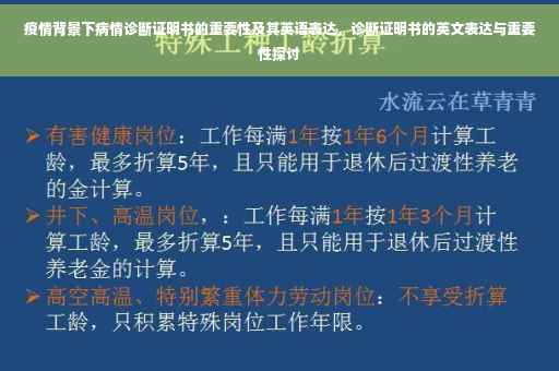 在当前全球疫情蔓延的背景下,病情诊断证明书的重要性日益凸显,作为自媒体作者,我们有必要深入了解并正确表达这一关键文件的内容,本文将详细介绍病情诊断证明书的作用、内容及其英语表达,以便更好地为读者提供信息和帮助。