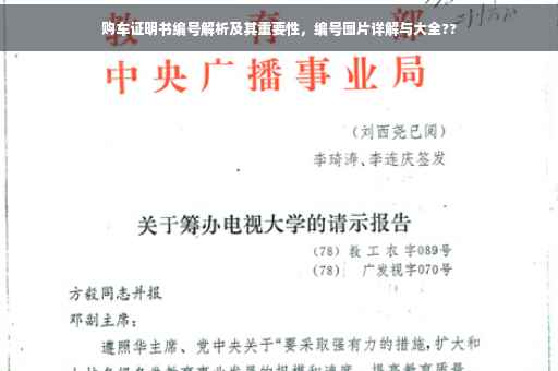 摘要:本文介绍了购车证明书编号图片的重要性及其解析。购车证明书是车辆购买的重要凭证,编号图片则是证明书的唯一标识,对于车辆所有权验证、保险理赔等具有关键作用。本文还提供了丰富的购车证明书编号图片大全,供读者参考。正确理解和使用购车证明书编号图片,对于保障车主权益具有重要意义。