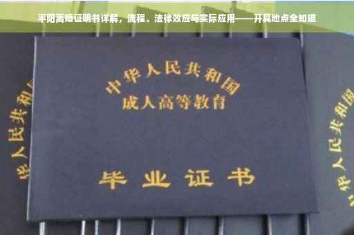 摘要:本篇内容主要围绕平阳离婚证明书展开解读,详细介绍了其流程、法律效应和实际应用。想要获取平阳离婚证明书,需按照法定程序前往相关部门办理。本文旨在帮助读者了解离婚证明书的办理过程及其重要性,以便在实际应用中正确有效地使用。