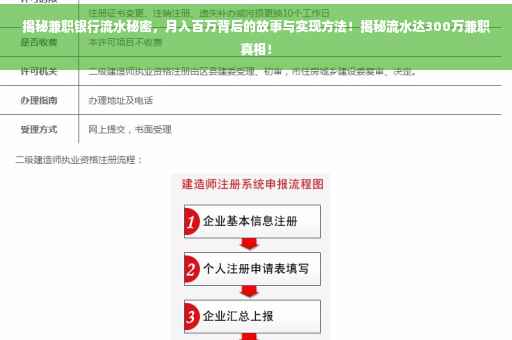 近年来,随着互联网的普及和经济的飞速发展,越来越多的人开始涉足兼职领域,其中不乏一些通过兼职实现银行流水达百万甚至千万的案例,本文将为您揭示兼职背后的银行流水秘密,探讨如何通过兼职实现月入百万的目标,并分享一个真实的银行流水达300万的兼职故事,让我们一起探索这个充满机遇与挑战的世界!