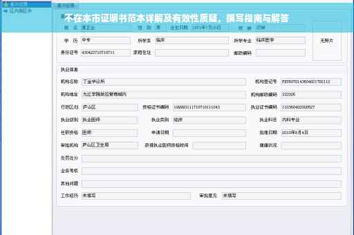 本文提供的范本和指南旨在帮助大家了解如何规范、准确地完成不在本市证明书的制作,在实际应用中,请根据具体情况调整和完善内容,确保证明书的真实性和有效性。