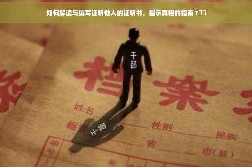 摘要:,,本文将揭示如何解读那些证明他人的证明书。了解证明书的种类和目的至关重要。解读证明书时需要关注签发机构的信誉和证明内容的真实性。撰写证明其他人的证明书时,应明确说明被证明对象的信息、证明事项及具体事实,确保内容准确、客观、合法。本文旨在帮助读者正确理解和运用证明书,揭示背后的真相。