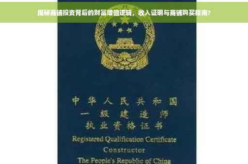 摘要:本文将介绍买商铺的收入证明的重要性及其背后的财富增值逻辑。通过了解商铺投资的特点和优势,本文将指导读者如何开具有效的收入证明,包括准备相关材料、填写必要信息以及注意事项等。通过掌握这些技巧,投资者可以更好地展示其投资实力和财富增值能力,为未来的财富增长打下坚实的基础。