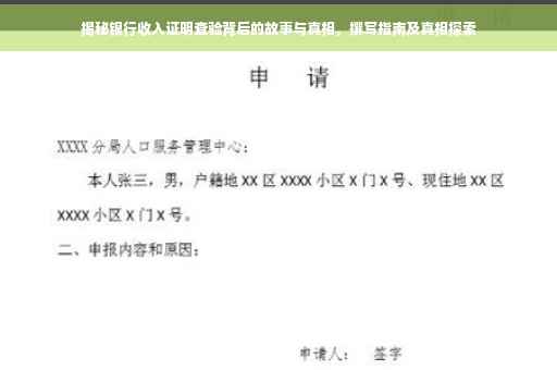 摘要:在金融业务中,银行要求申请人提供收入证明是一个常见的流程,本文旨在深入解析银行查验收入证明的目的、流程、收入证明的种类与要求,以及在此过程中可能遇到的常见问题及解决方案,本文还将探讨这一过程背后的故事与真相,揭示银行与申请人之间的信任与合作博弈。