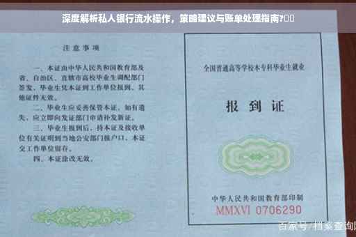 摘要:私人银行操作流水账单需要深度解析并制定相应的策略建议。银行应了解客户业务需求,提供定制化服务,如合理规划资金流动、优化资产配置等。银行需关注风险控制,确保流水账单的真实性和合法性。建议客户与银行保持良好沟通,合理规划资金进出,提高资金使用效率。通过深度解析和策略建议,私人银行可为客户提供更优质的服务,实现双赢。