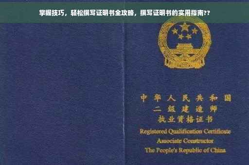 掌握技巧,轻松撰写证明书。撰写证明书并不复杂,只需遵循一定的格式和技巧,便能轻松完成。本文介绍了证明书的基本结构和要点,包括标题、正文、签名和日期等部分。通过实例演示了如何清晰表达证明内容,同时强调注意事项,如确保内容真实、准确、完整。掌握这些技巧,您将能够迅速完成证明书撰写,提高工作效率。