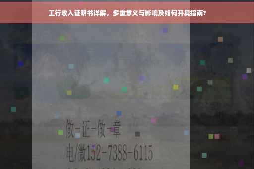 摘要:本文将详细介绍工行收入证明书的多重意义与影响。工行收入证明书不仅是个人收入的有力证明,还关乎个人信用评估、贷款申请等方面。本文将指导读者如何开具工行收入证明书,包括所需材料和流程等细节,帮助读者更好地理解和利用这一重要证明文件。