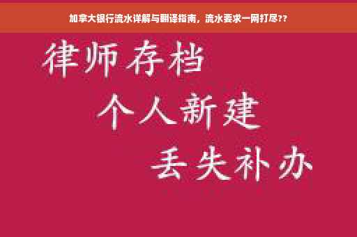 随着全球化的发展,越来越多的人选择到加拿大生活、工作或学习,在这个过程中,银行流水作为评估个人财务状况的关键文件,扮演着举足轻重的角色,无论是申请签证、贷款还是办理其他金融业务,加拿大银行流水都是不可或缺的重要证明,本文将为您详细介绍加拿大银行流水的相关内容,并提供翻译指南,助您更好地理解和使用。