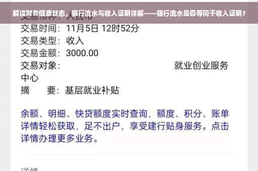 在现代社会,随着经济的发展和金融市场的繁荣,越来越多的人开始关注自己的财务状况,银行流水和收入证明作为反映个人经济活动的关键指标,对于个人信用评估、贷款申请、工作求职等方面都具有重要意义,本文将详细解读银行流水与收入证明的关系,帮助读者更好地理解自己的财务健康状态。