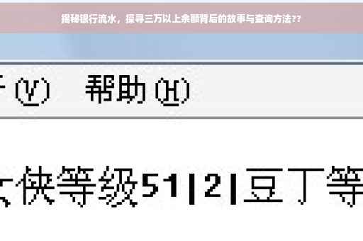 摘要:本文将介绍如何查看银行流水中的三万以上余额,揭示背后可能存在的故事。通过简单步骤,读者可以了解自己的银行账户流水情况,包括余额、交易明细等。本文将指导读者如何操作,以便更好地管理自己的财务,确保资金安全。