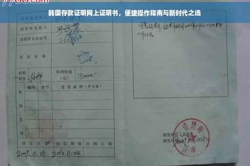 随着互联网的普及和科技的飞速发展,我们的生活变得越来越便捷,在这个信息时代,许多传统的繁琐流程逐渐被简化,甚至被完全取代,韩国存款证明网上证明书就是其中之一,本文将详细介绍韩国存款证明网上证明书的相关内容,帮助您更好地了解这一便捷的新时代选择。