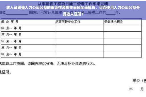 在当今社会,随着经济的发展和就业市场的繁荣,越来越多的人选择通过人力资源公司寻找工作机会,在这种情况下,一份有效的收入证明对于个人信用、贷款申请、租房以及社会福利等方面都具有重要意义,本文将详细介绍收入证明盖人力公司公章的相关事项,帮助读者更好地了解这一过程。