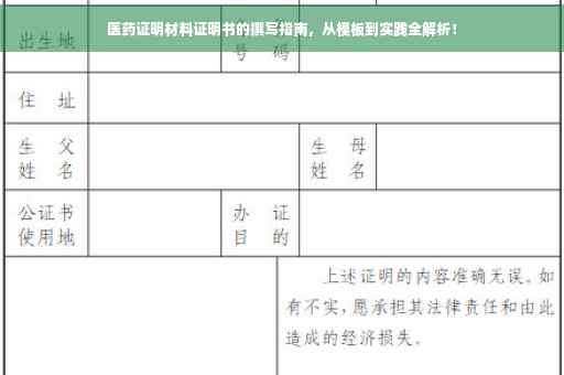 本文旨在帮助读者了解并掌握医药证明材料证明书的撰写方法和技巧,在实际操作中,还需根据具体情况进行调整和完善,确保证明书的真实性和准确性,希望读者能够按照本文的指导,顺利完成医药证明材料证明书的撰写。