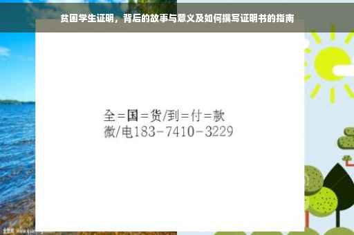 摘要:贫困学生证明是一份重要的证明书,背后蕴含着深刻的故事和意义。这份证明书的撰写不仅关系到学生的资助申请,更是对他们家庭经济状况的真实反映。了解如何正确书写贫困学生证明,有助于学生顺利获得资助,改变命运。本文将介绍贫困学生证明的意义、书写要点及相关注意事项,为需要帮助的学生提供指导。