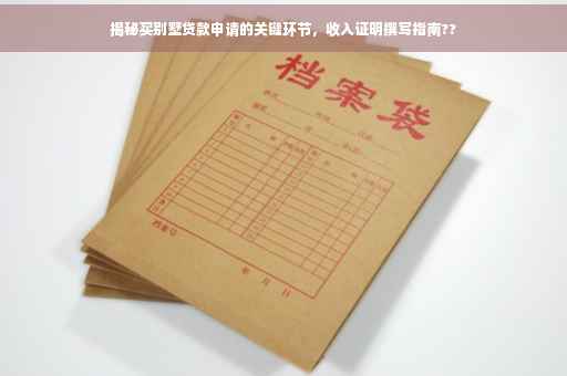 摘要:申请买别墅贷款时,收入证明是重要的一环。收入证明应真实、详细,包括个人基本信息、工作岗位、收入情况等。撰写时需注意格式规范,提供必要证明材料。本文为您揭秘收入证明在申请贷款过程中的关键作用,助您顺利获得别墅贷款。
