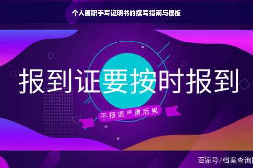摘要:本文介绍了个人离职手写证明书的写法。该证明书应包含离职人员的姓名、职务、离职时间等基本信息,并简述离职原因。书写时需注意格式规范、清晰明了,确保信息的真实性和准确性。离职证明书是离职手续的重要文件,有助于个人在新工作场合的证明自身工作履历。