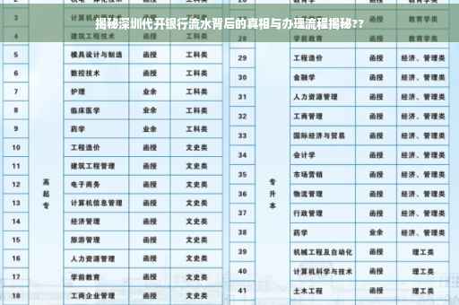 近年来,随着金融行业的快速发展,越来越多的人开始关注自己的财务状况,在这个过程中,银行流水作为重要的财务证明之一,其作用日益凸显,在深圳这座繁华的城市里,一些人却选择通过代开银行流水的方式来解决自己的需求,深圳代开银行流水的真相究竟是什么呢?让我们一起探讨这个问题。
