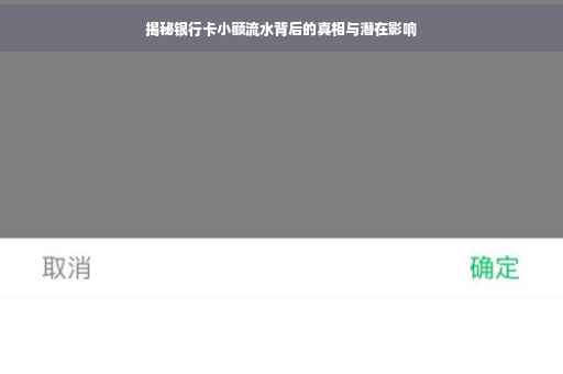 随着电子支付方式的普及,银行卡已成为人们日常生活中不可或缺的一部分,近年来,关于银行卡小额流水的讨论逐渐增多,引起了广泛关注,究竟什么是银行卡小额流水?它背后又隐藏着怎样的真相?又将产生哪些影响?让我们一起揭开这一话题的神秘面纱。