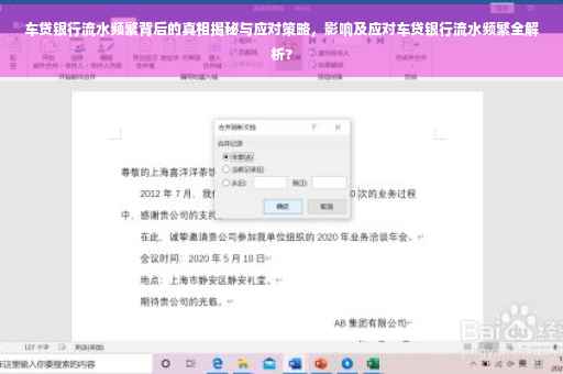 随着汽车消费市场的繁荣,车贷已成为越来越多人实现购车梦想的重要途径,在银行车贷审批过程中,银行流水频繁成为困扰许多借款人的问题,本文将深入探讨车贷银行流水频繁背后的原因,揭示其真实影响,并为大家提供应对之策。